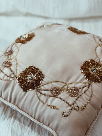 Enfin, place à la création de la broderie où les perles/paillettes et fils s’entremêlent sous mon crochet et mes aiguilles.